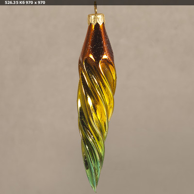 Это были стеклянные сосульки без напыления. С одной стороны вдоль длины прозрачные, с другой - не прозрачные. Но главная проблема в том, - и я больше ни разу ни сама, ни знакомые не встречали, - что раскрашены они были градиентом сверху-вниз. Одна жёлто-зелёная, другая розово-сиреневая. Ищу именно двухцветные, одноцветные и дома есть. Может быть, встречал кто-то хотя бы на фото? Я б знакомым хоть показывала, что мне надо.